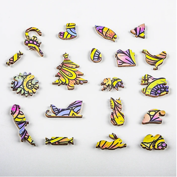Each puzzle piece has its own unique shape.This is a high complexity of assembly (200 unique shape puzzles similar to 1000 usual cardboard puzzles in complexity)